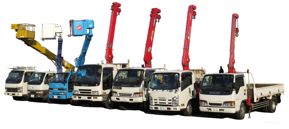 当社は様々な工事・施工状況に対応する為、大小様々な高所作業車・移動式クレーン車を用意しております。 また、看板のメンテナンスや点検などを行う為のパトロールカーも配備しております。